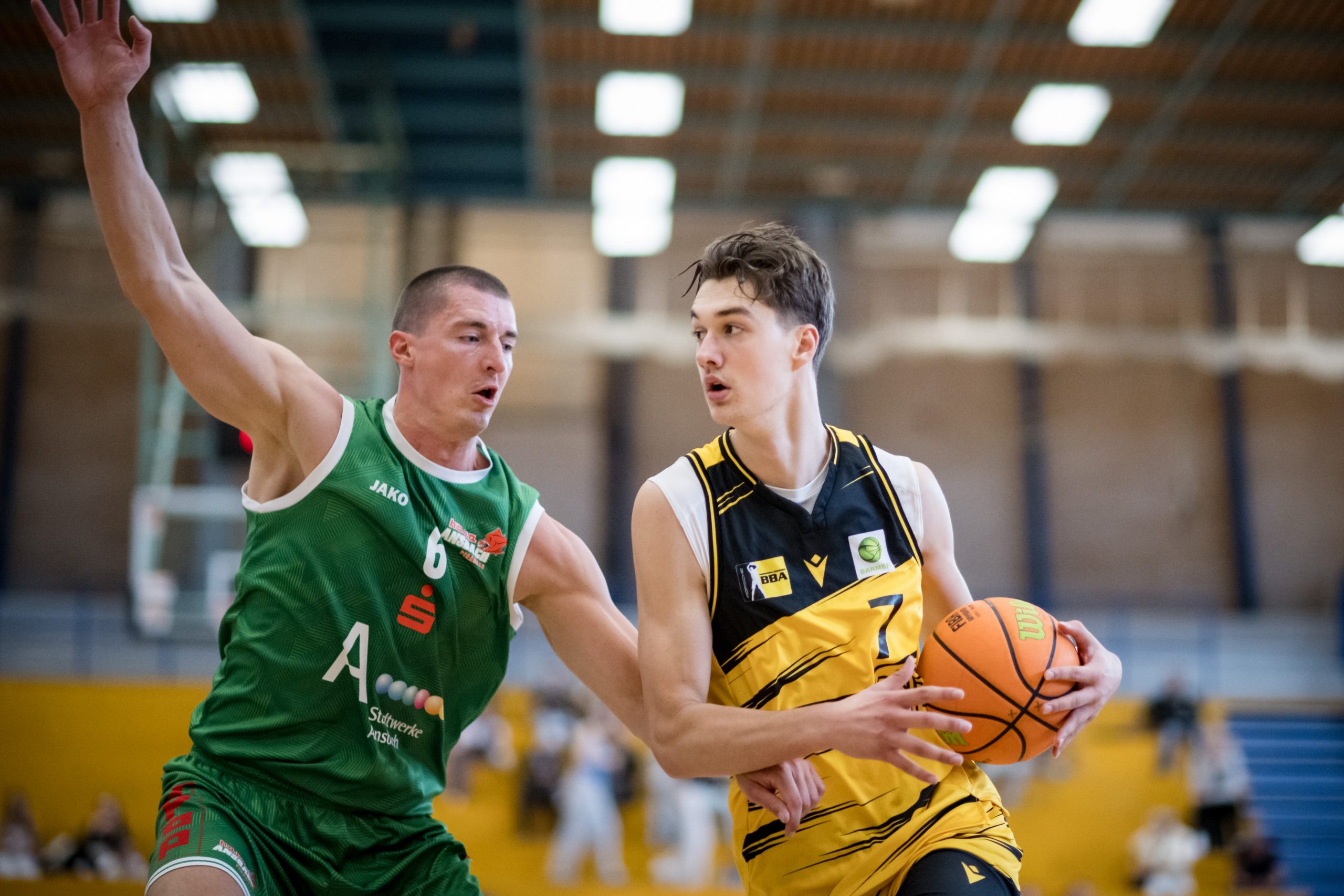 Die Porsche Basketball-Akademie erlebt in der ersten ProB-Partie der Spielzeit einen Idealstart. In und gegen Würzburg gelingt ein in dieser Höhe nicht zu erwartender 77:53-Sieg. Beim Gastspiel in Franken, dem Auftakt in die vierte Spielzeit in der BARMER 2. Basketball Bundesliga, kommen alle Gelb-Schwarzen zum Einsatz. Simon Feneberg bestätigt als Topscorer (13 Punkte) seine gute Frühform.
