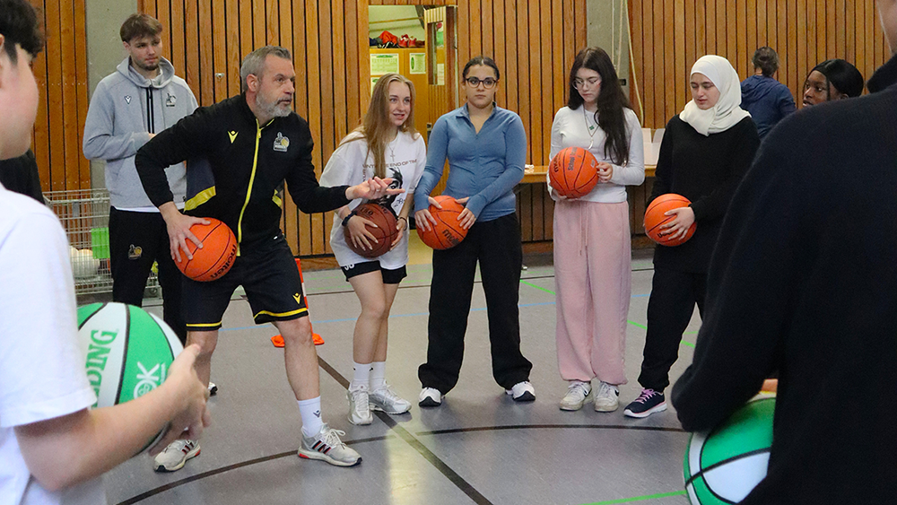Der Besuch fand im Sportunterricht statt, der dann von Salzer und Schuster geleitet wurde. Viele der Schüler: innen hatten vor dem Event nur selten, oder gar nie, Basketball gespielt und bekamen von den Ludwigsburgern eine erste Einführung in die Sportart. Alle Jugendlichen waren mit großer Begeisterung dabei und gaben Antworten auf jede von Salzers zu Beginn gestellten Fragen. Auch als es vom theoretischen zum praktischen Teil des Besuchs überging, zeigten alle großen Eifer beim Erlernen der Grundlagen des Basketballs. Die Schüler: innen lernten das Dribbeln, Passen und Werfen und waren am Ende bereit, in kurzen Spielen gegeneinander anzutreten.